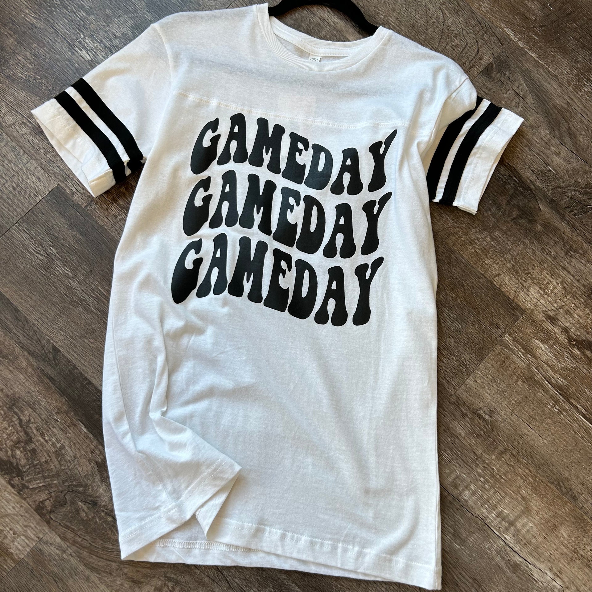 Get ready to hit the field in style with our Gameday tee! With its bold black-and-white pattern and subtly unisex fit, you'll be scoring fashion TDs in no time. Go long! (And don't forget the chips).
