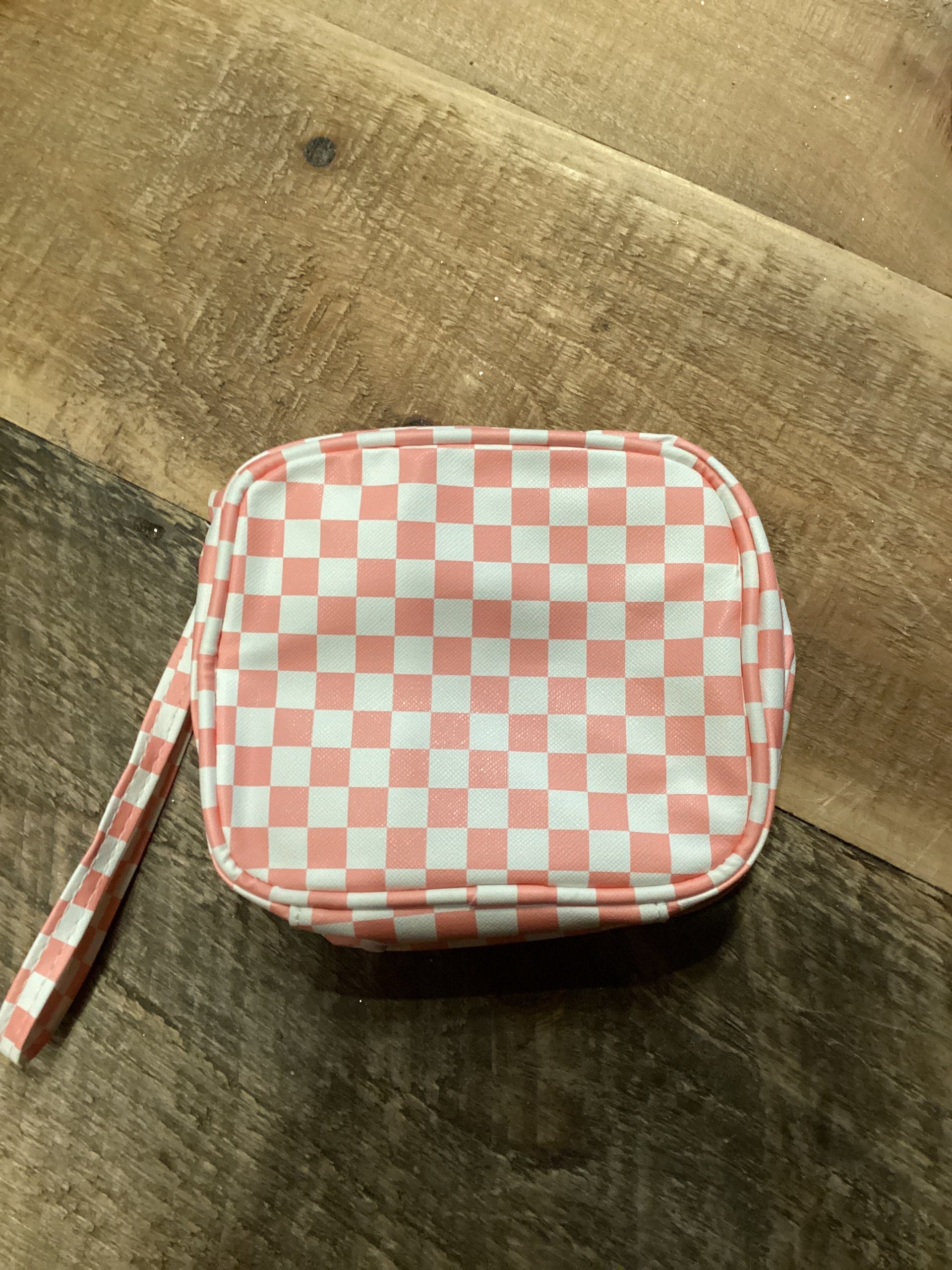 PINK CHECKERED MAKEUP BAG