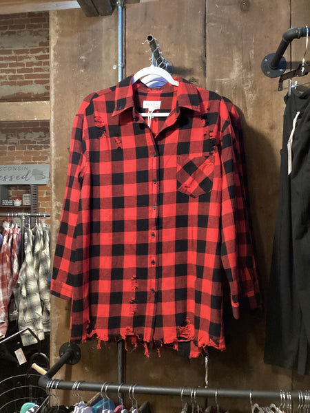 Red Oversized distressed Long flannel