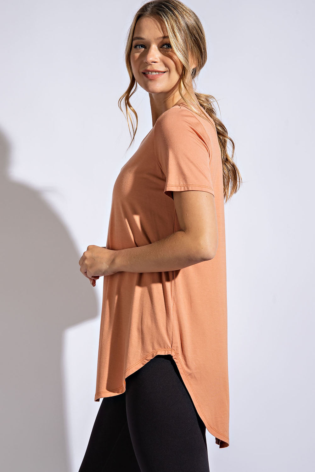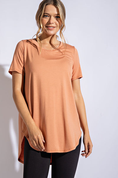 Stay cool and look stylish this summer in this Round Neck Short Sleeve! Features include a round neck for a charming casual look, short sleeves that won't weight you down, and a high low hemline for a fun and flattering fit. So don't sweat it, just enjoy your fashion-forward looks!