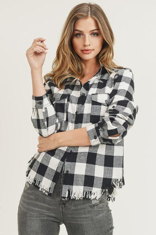 Curvy Size Fray Hem Black buffalo Plaid flannel